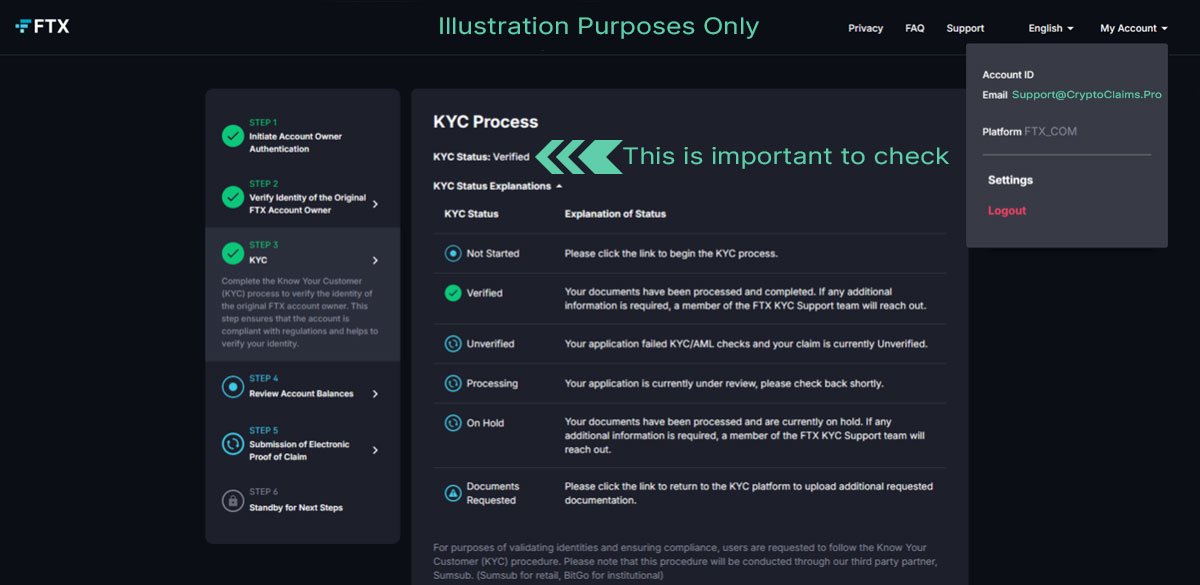- Now, please e-mail Support@CryptoClaims.Pro the following information from the FTX.com portal (Recovery User Login | FTX):